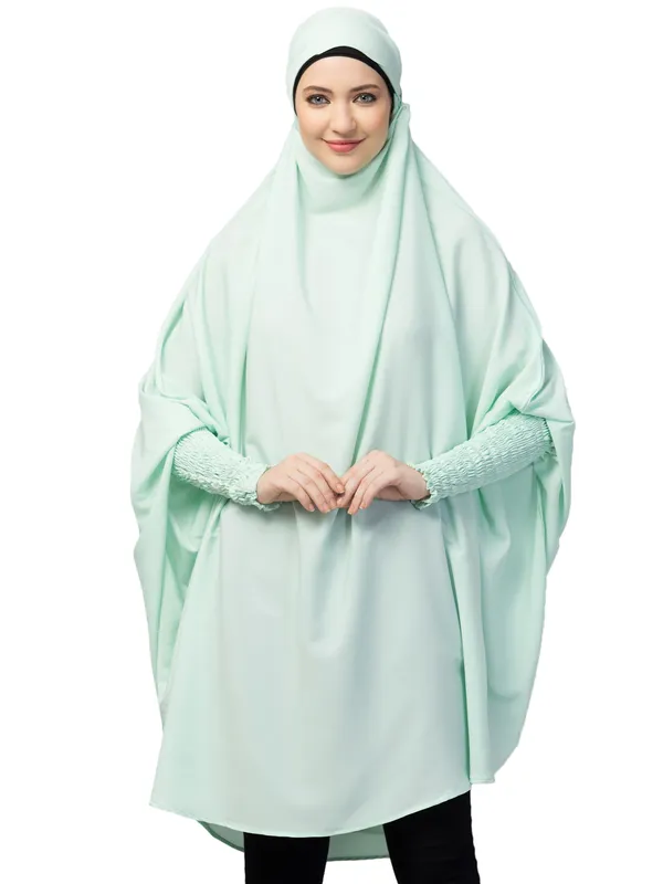 Aqua Naqab With Khimer Tie At Back Smoking At Wrist For Women.( Ready To We..More