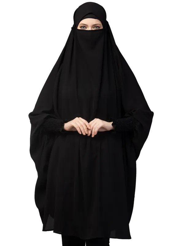 Black Ready To Wear Tie At Back Smoking At Wrist With Naqab Instant Khimer