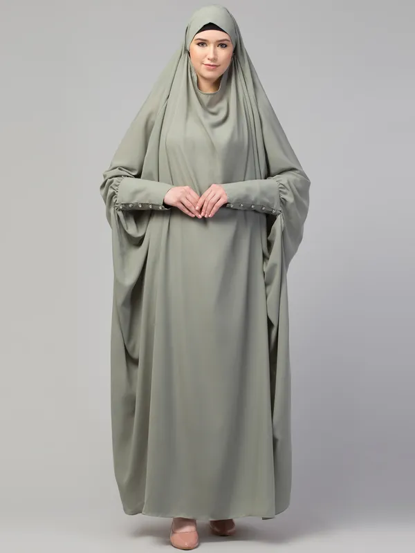 Grey Head To Toe Long Cuff Ready To Wear One Pc Jilbab With Naqab