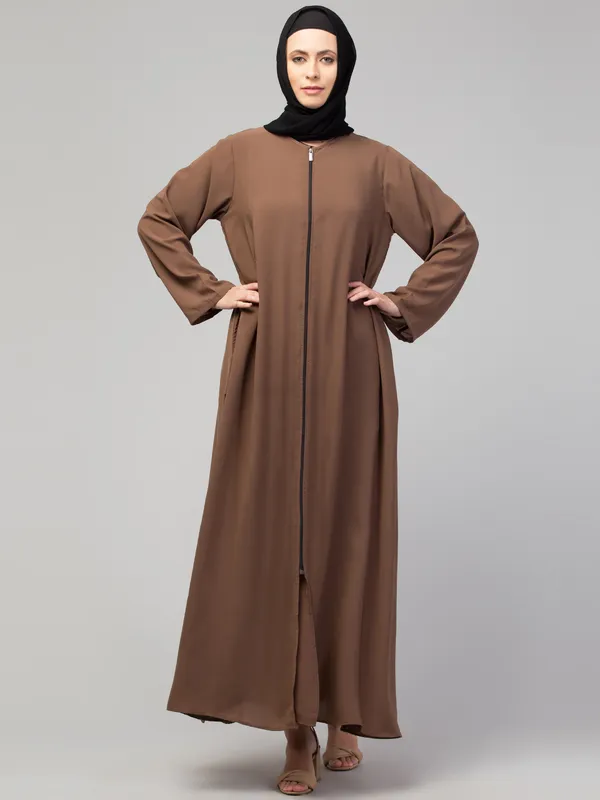 Lt. Brown Front Open With Zip Daily Wear Basic Abaya/ Burqa/ Naqab