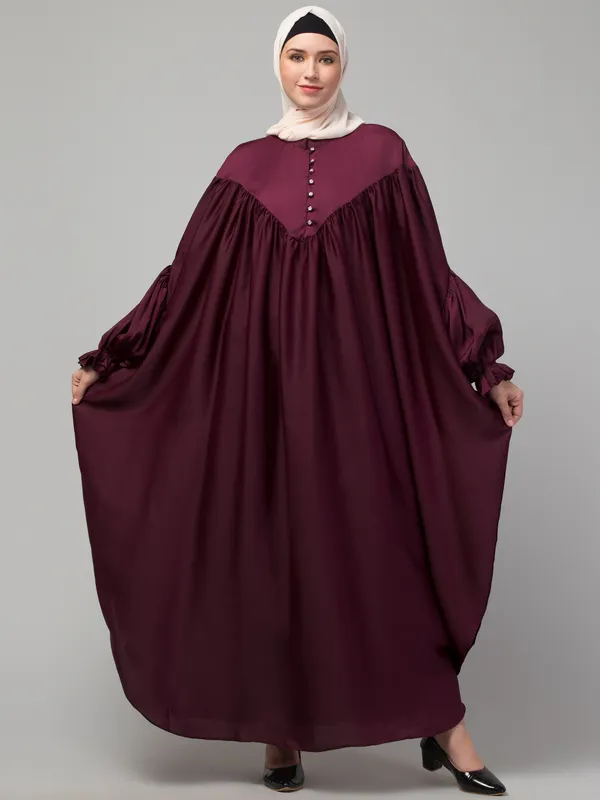 Maroon Abaya With Yoke And Gathered Front And Back Pleated Sleeve For Women..More