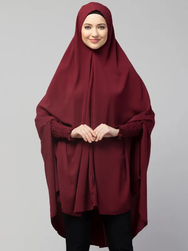 Maroon Smoking Sleeve Instant Ready To Wear Jilbab Cum Khimer Hijab