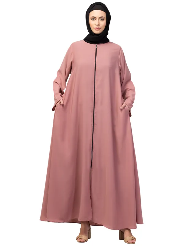 Mauve Pink Front Open With Zip Daily Wear Basic Abaya/ Burqa/ Naqab