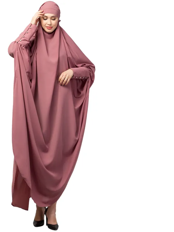 Mauve Pink Head To Toe Long Cuff Ready To Wear One Pc Jilbab With Naqab