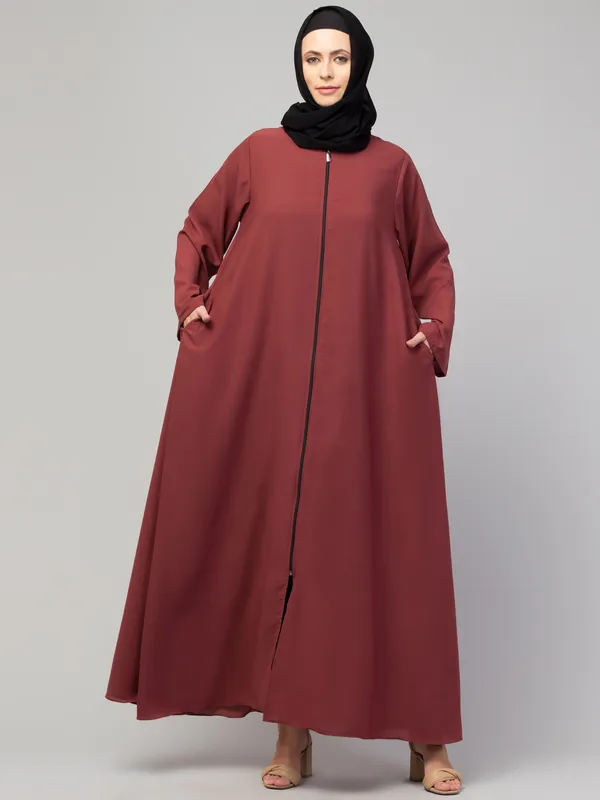 Rust Front Open With Zip Daily Wear Basic Abaya/ Burqa/ Naqab