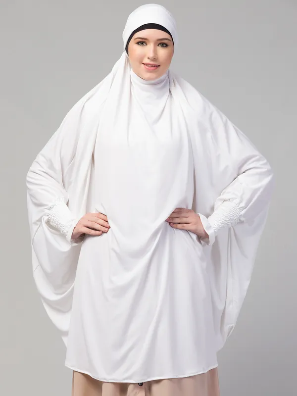 White Naqab With Khimer Tie At Back Smoking At Wrist For Women.( Ready To W..More